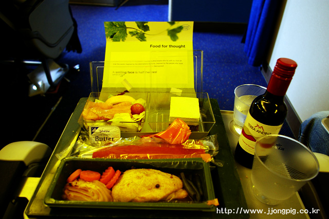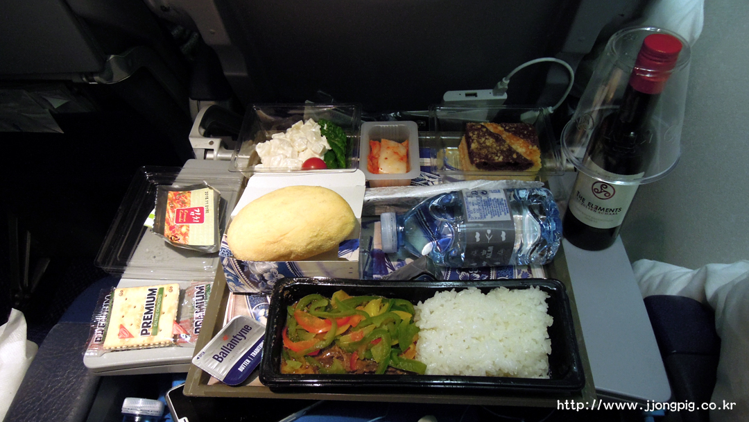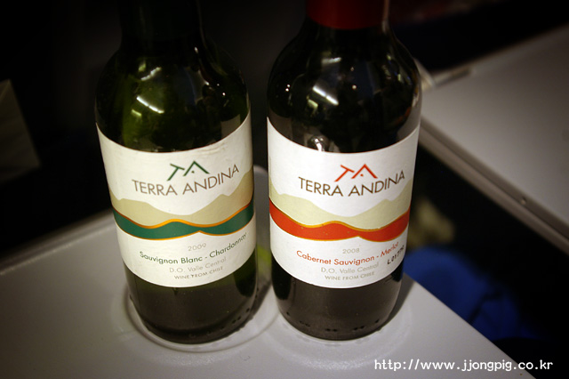 와인은 레드와인과 화이트 와인중에 선택 가능한데 잔에 주지 않고 미니병을 그대로 준다. 개인적으로는 좋다. 개인적으로는 기내식이 팍팍하면 레드와인을, 국물이 있는 약간 자박한? 음식이라면 화이트 와인을 추천한다.