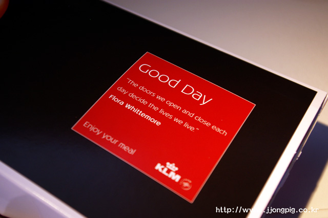 KLM은 한국인 승무원이 탑승한다. 전체적으로 KLM은 승무원분들이 여유에 여유가 넘친다. 뭔가 문제가 생겨도 여유있게 잘 해결하고 기분좋게 서비스한다는 뜻이다.