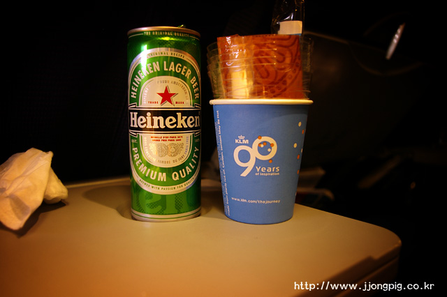 KLM하면 하이네켄 맥주가 기본으로 나온다.
