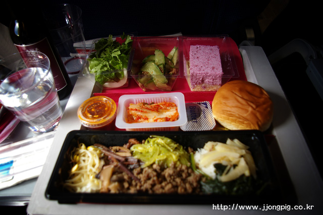 한식 전문점과 제휴해서 한식 메뉴가 나오고는 있다고 하는데, 특별히 더 맛있다고 하기에는 좀 부족하다. 그런데 분명한것은 에어프랑스는 대한항공보다 먼저 1996년에 이미 김치를 제공한적이 있고, KLM도 유럽계 항공사 중에서는 처음으로 한식을 제공했다고 한다.
