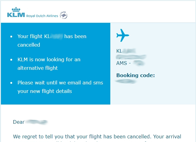 예를 들면 항공편의 결항이나 지연 등이 발생하면 이메일로 먼저 안내가 나간다. 전화번호를 입력하면 KLM에서는 직접 국제전화로 전화를 할때도 있다.