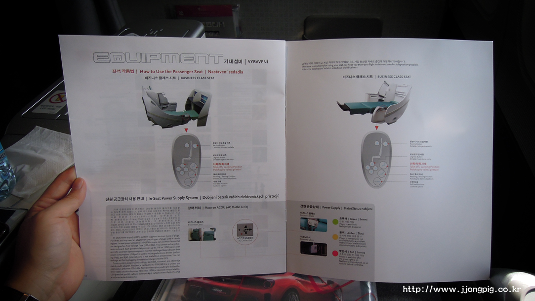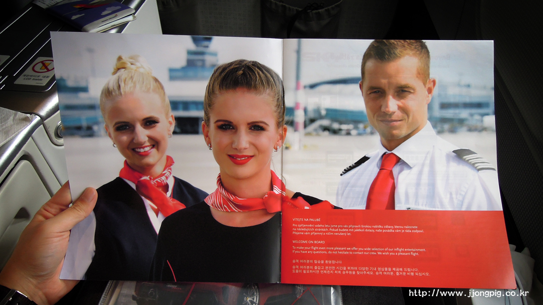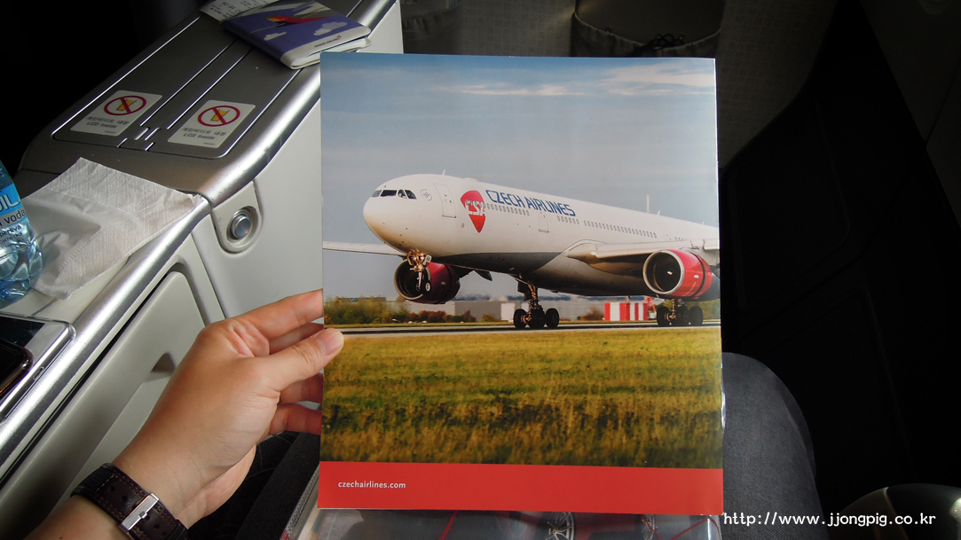 체코항공은 전체 운영하는 비행기가 20대도 채 안된다. (참고로 제주항공이 40대를 바라보고 있다). 그나마 유럽대륙을 벗어나는 장거리비행기는 바로 우리가 탑승했던 Airbus A330-300이고, 그것도 딱 한대다. OK-YBA. 대한항공에서 HL7701로 운영했던 비행기를 그대로 체코항공에 빌려주어서 그런지 대한항공의 좌석배열과 99% 동일하다. 비즈니스석의 경우 대한항공의 프레스티지 슬리퍼와 동일하다.