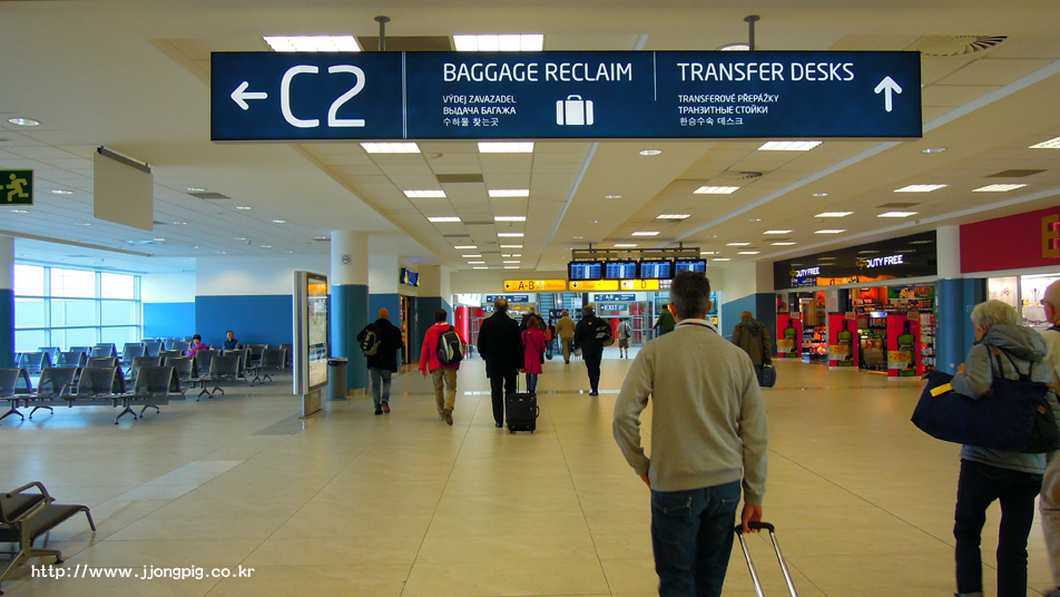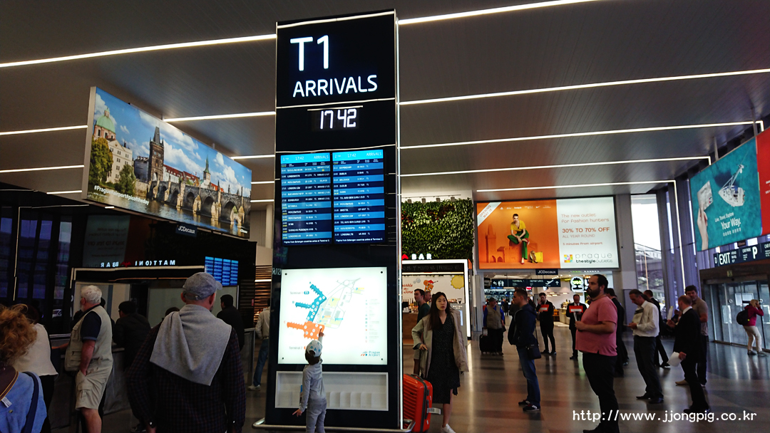프라하 바츨라프 하벨 공항에 도착하면 출국/입국 승객이 혼용해서 사용하는 구조이기 때문에, 어색할 수 있지만 똑같이 Exit만 찾아서 나가면 된다. 면세점 이용도 가능하다. 비즈니스석이상을 이용했다면 프라하공항에서는 Fast Track 같은 서비스가 있기 때문에 빠른 입국심사 처리가 가능해서 유용했다.