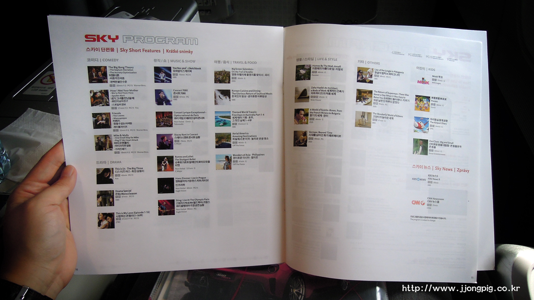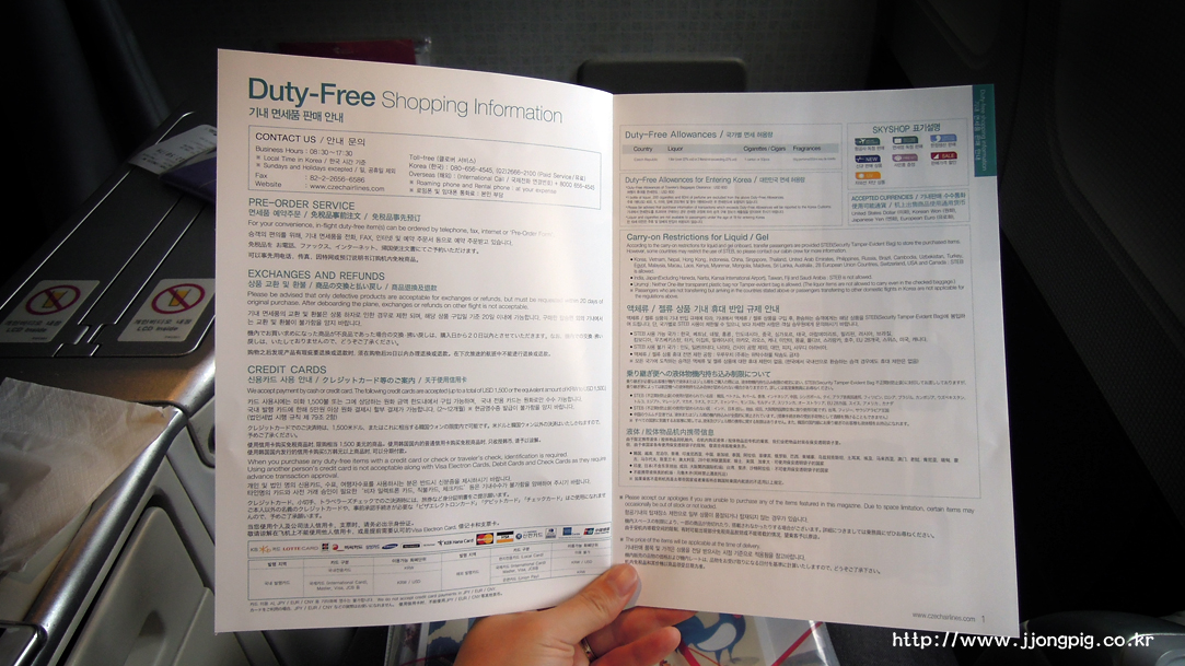 아무튼 대한항공 덕분에? 체코항공 장거리편에서 기내면세품도 대한항공 시스템 그대로 쓰는 것이고, 기내 엔터테인먼트도 그대로 활용하는 것 같다.