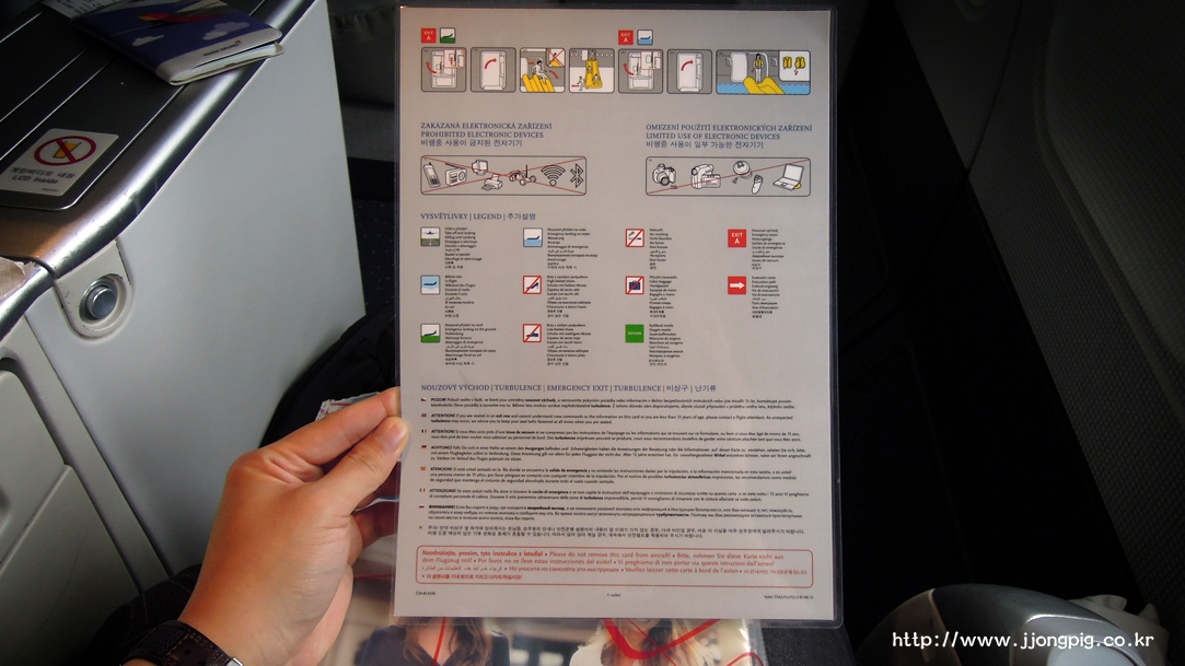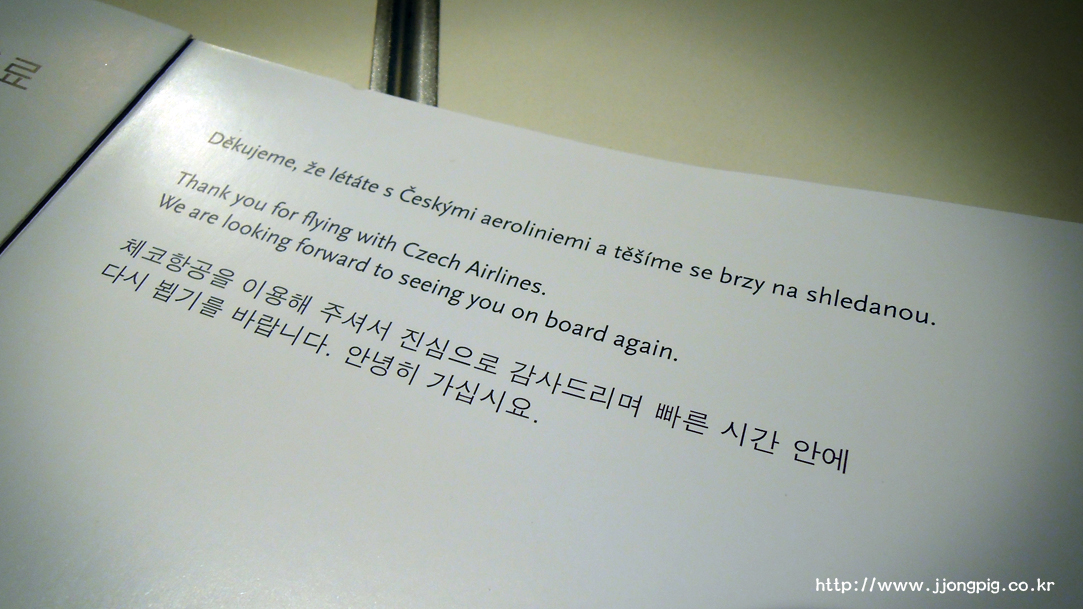 체코항공에서는 안내문에 한글이 거의 기본으로 기재되어있다.