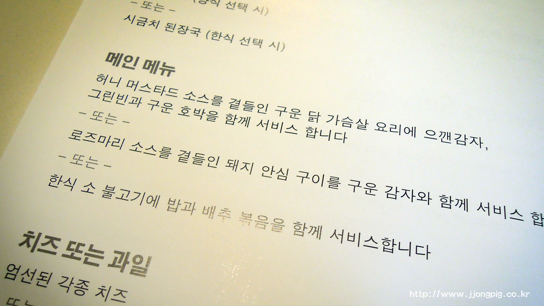 아래 사진은 같이 제공되는 메뉴 안내문.