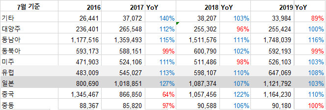 이번에는 7월 기준 인천공항 출입국 통계를 체크해보았다.