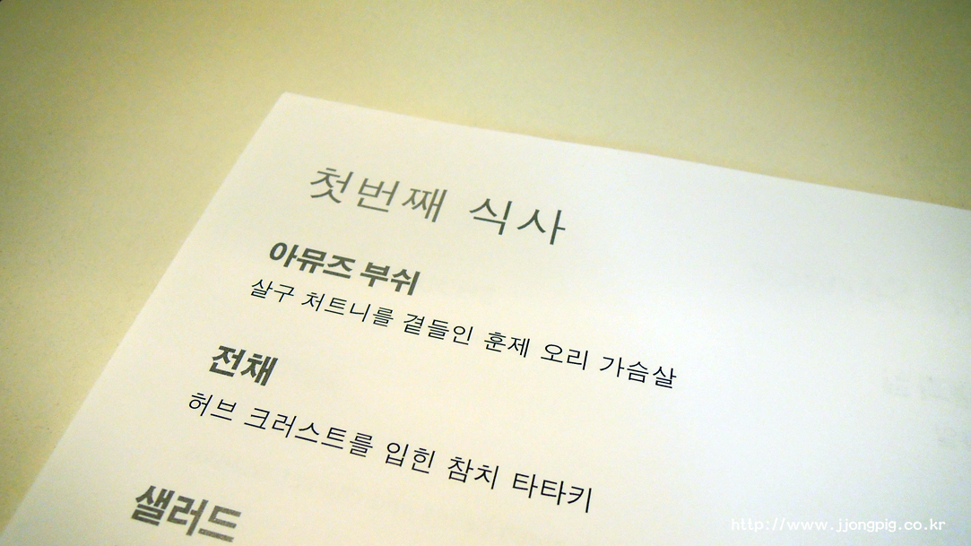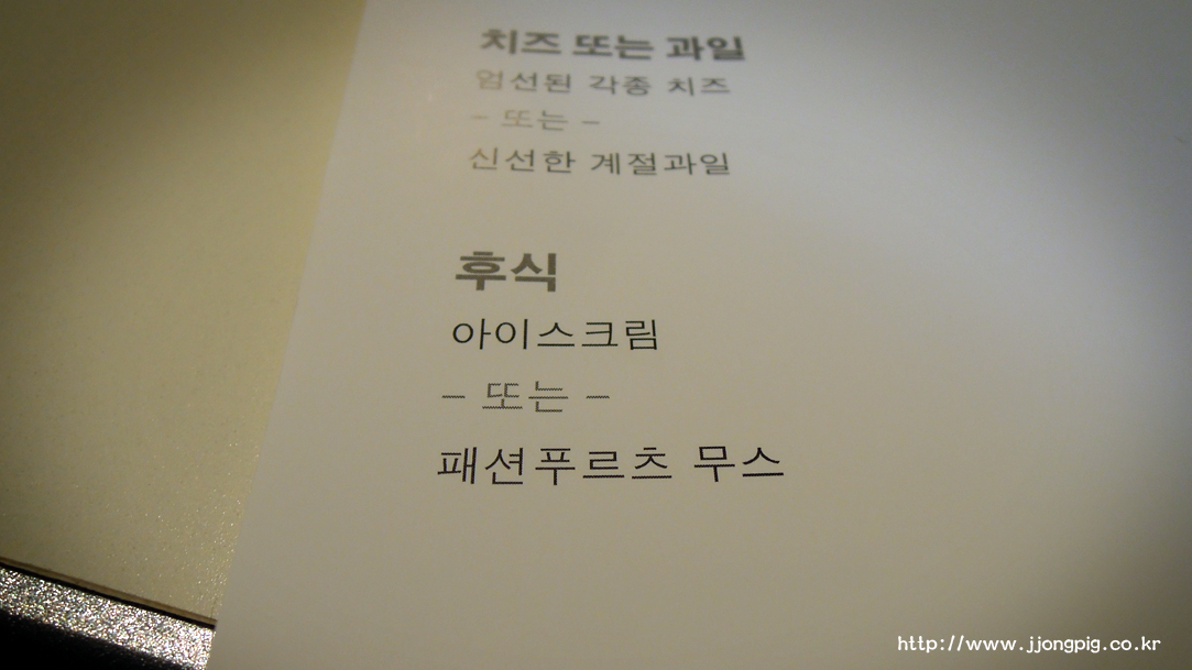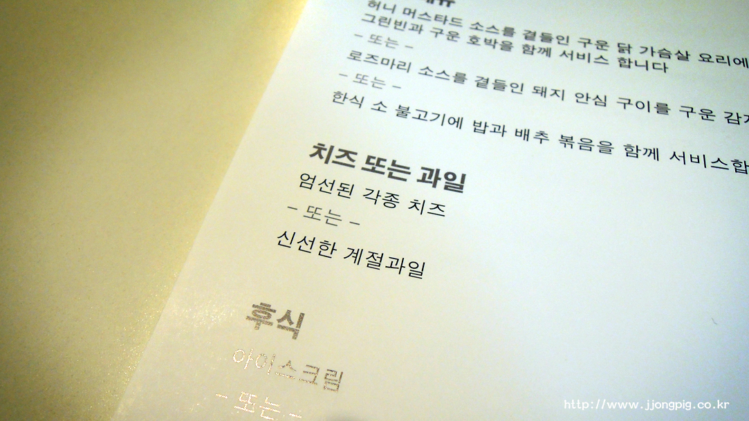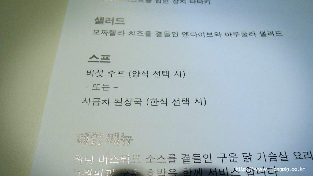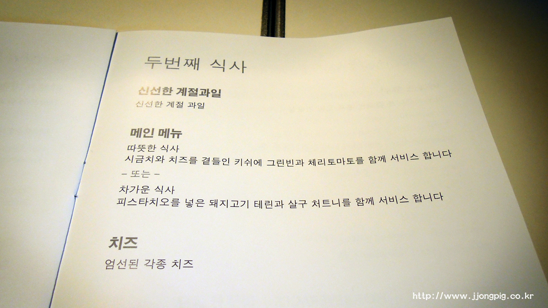 아래 사진은 같이 제공되는 메뉴 안내문.