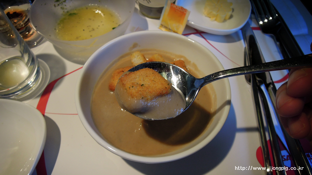 재미났던것은 식기나 커피잔의 받침인데, 일반적인 원형이 아니라 로고에 맞춰서 제작을 했다는 점이다. 그래서 동그란받침의 물컵으로 제공받으면 뭔가 조금씩 안맞는다. 호환성?이 떨어지는 디자인이라 약간의 아쉬움이 있다.
