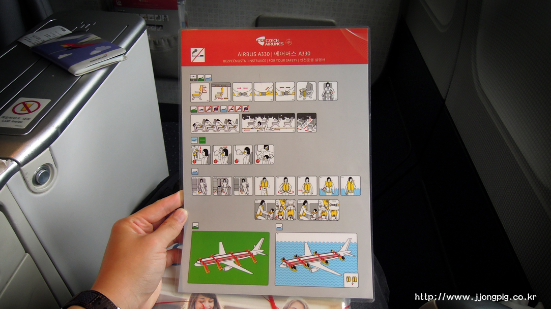 체코항공은 전체 운영하는 비행기가 20대도 채 안된다. (참고로 제주항공이 40대를 바라보고 있다). 그나마 유럽대륙을 벗어나는 장거리비행기는 바로 우리가 탑승했던 Airbus A330-300이고, 그것도 딱 한대다. OK-YBA. 대한항공에서 HL7701로 운영했던 비행기를 그대로 체코항공에 빌려주어서 그런지 대한항공의 좌석배열과 99% 동일하다. 비즈니스석의 경우 대한항공의 프레스티지 슬리퍼와 동일하다.