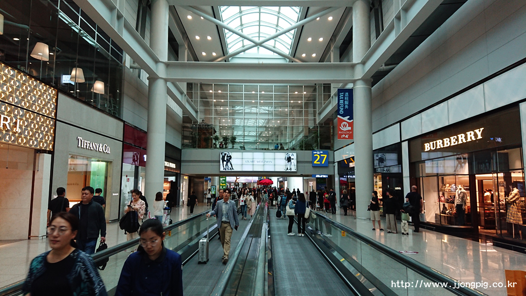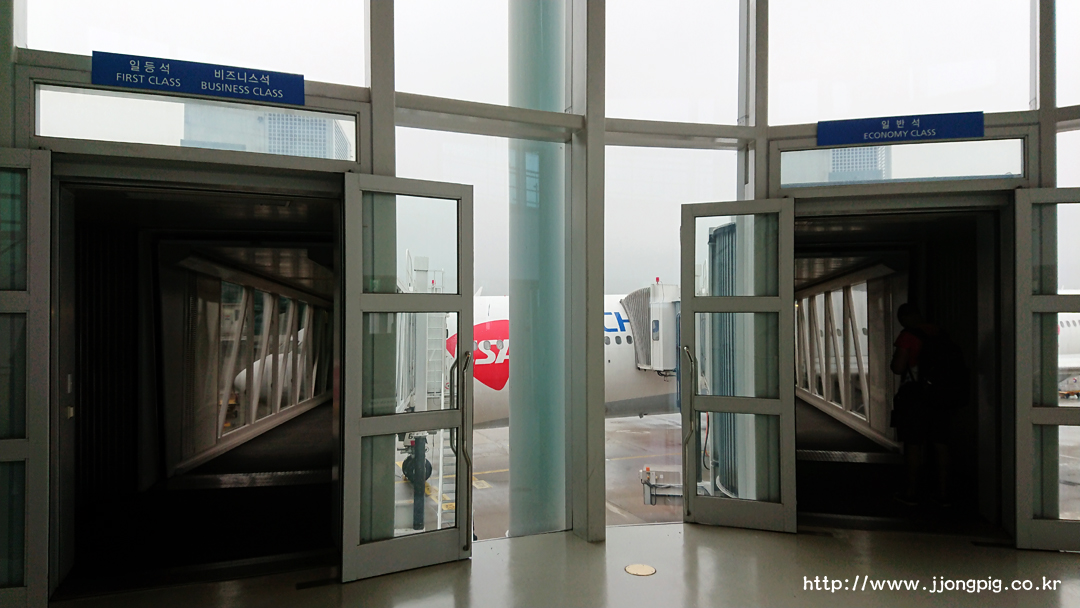 순서가 되어 탑승권을 제시하고 에스컬레이터를 따라 내려간다. 그러면 탑승할 클라스에 맞춰서 탑승교를 선택해서 탑승하면 된다.