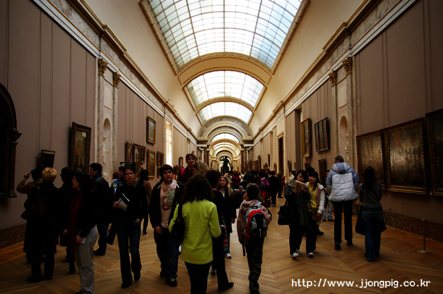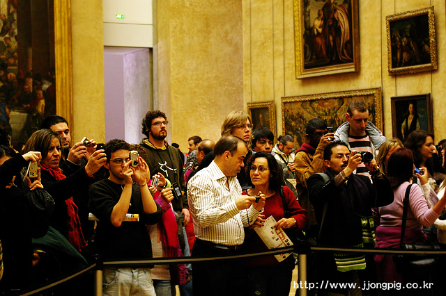 모나리자가 있는 곳이다. 사실 가끔 와보더라도 항상 사진기를 들고서 열심히 찍는 모습은 예나 지금이나 똑같은 것 같다. 그러나 서서히 핸드폰으로 열심히 사진찍는 사람도 등장하고, 사람들이 손에 쥔 사진기도 점점 얇아지는 것을 느낀다. 사실 나는 모나 리자를 가까이서 보기가 어려웠다. 그 녀 뒤에 그려진 모습들을 내 두 눈으로 자세히 본다는 것은 눈에 현미경을 달지 않는 이상 정말 불가능했다.