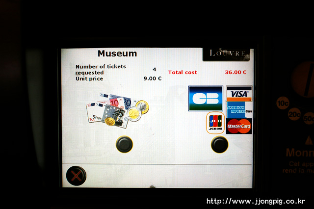 이제 티켓을 구입하면 되는데 신용카드 등으로 구입해도 괜찮다. 그러나 신용카드로 구입하는 줄이 따로 있어서 잘 보고 서야하고, 국제학생증 등을 통한 학생 할인은 없다. (줄이 너무 좀 길다 싶으면 입장권을 판매하는 기계도 있으니 참고~!)