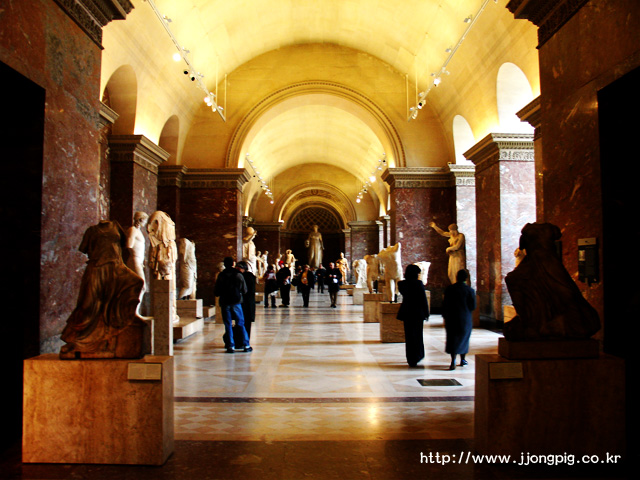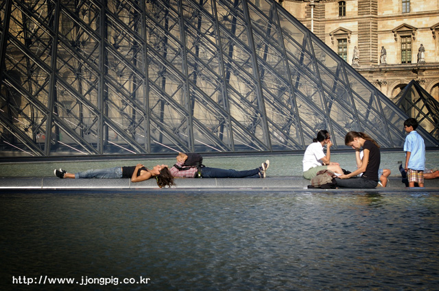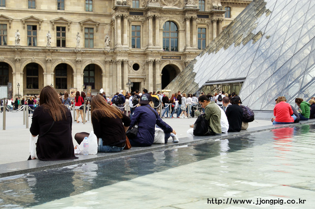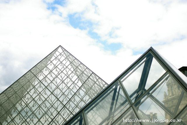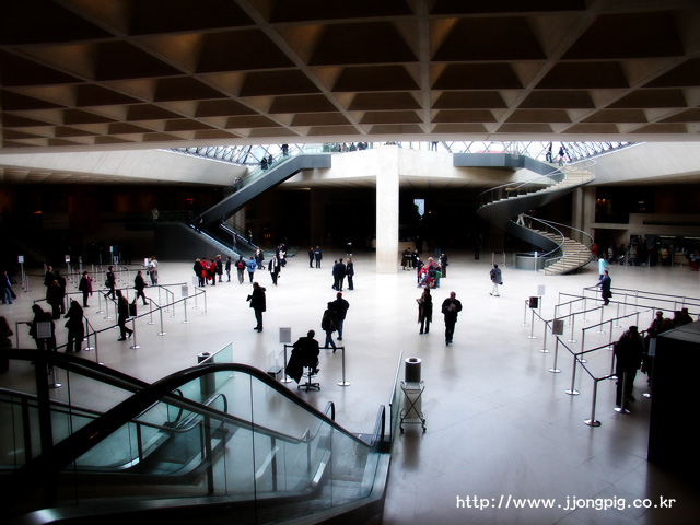 다시.......여기는 유리피라미드가 있던 그랑루브르다. 이 곳 유리피라미드라고 하면 '페이'의 작품인 것은 알만한 사람은 다 아는 사실일텐데, 그는 왜 위에 피라미드 모양을 만들어 놓고 또 이렇게 역으로 만들어 놓았는지 나는 아직 잘 모르겠다. -.-a 하늘과 땅을 거꾸로 놓고 본 것인 지도 모르겠다.