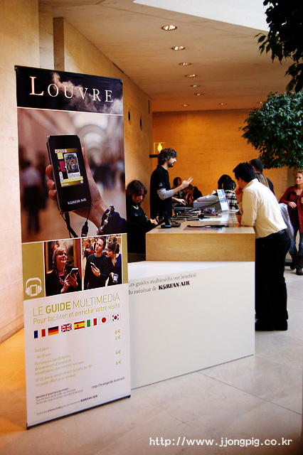 사실 이곳은 지하1층이다. 이렇게 루브르 박물관은 지하1층과 지상 3층으로 구성이 되는데, 시작은 지하1층이다. 그리고 가운데 룸에 보면 간단한 브로셔 등을 나누어주기도 하는데, 최근에는 한국어 안내도도 제공하기 시작했다.