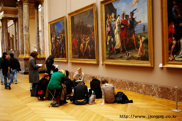 유럽여행 다녀본 분들은 한 번 쯤 보았겠지만, 이 곳 루브르 박물관에도 학생들이 모여있다.