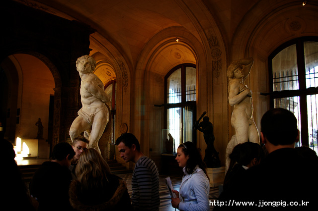 앞에서 보았던 사진중에 어린아이들이 미술작품을 감상하는 장면이 있는데, 그쪽 아이들이나 어른 손에 이끌려 유럽까지 온 한국아이들이나 그리고 나도 그렇고......그곳이 왜 유명한지는 잘 알고 있는 것 같다. 그러나 그것이 왜 가치가 있는지는 잘 모르겠다. 바꿔 말해 왜 걸작인지는 모르겠다는 것이다. -.-a 얼굴은 왜 없는지, 팔뚝은 왜 잘려져 있는지 그런것이 더 궁금할 뿐이다. --; 하지만 한 번 보고서 관심을 가진 뒤에 나중에 TV나 책 등을 통해서 다시 접하게 되면 내가 볼 수 있는 부분은 점점 많아지게 되는 것 같다는 느낌을 받게 된다.