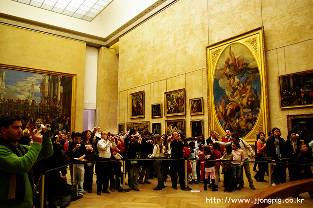 모나리자가 있는 곳이다. 사실 가끔 와보더라도 항상 사진기를 들고서 열심히 찍는 모습은 예나 지금이나 똑같은 것 같다. 그러나 서서히 핸드폰으로 열심히 사진찍는 사람도 등장하고, 사람들이 손에 쥔 사진기도 점점 얇아지는 것을 느낀다. 사실 나는 모나 리자를 가까이서 보기가 어려웠다. 그 녀 뒤에 그려진 모습들을 내 두 눈으로 자세히 본다는 것은 눈에 현미경을 달지 않는 이상 정말 불가능했다.
