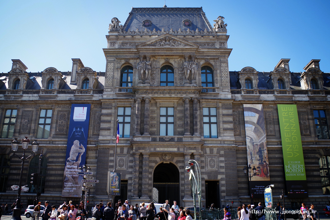 루브르 박물관은 세계 최대의 박물관이라고 해도 과언이 아니다. 세계 최대인 만큼 면적도 넓다보니 몇 개의 지하철 역과 연결이 된다. 관찰력 좋은 사람들은 사진에서 보았겠지만 벌써 앞 건물의 호텔 이름은 루브르다. 그런데 그곳에서 장사하는 사람에게는 미안한 말이지만 나름대로 좀 예술~ 이라는 생소한 것에 관심을 가지려는데 저런 상업적인 명칭을 보면 마치 아름다운 호수에서 닭, 오리 로스구이, 백숙 이란 간판을 보는 것 같은 기분이 든다. -.-