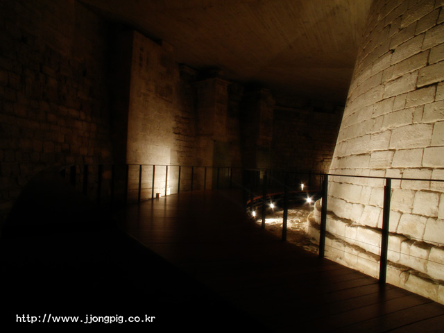 지하층을 다니다보면 루브르 박물관과 생뚱맞은(?) 성곽을 볼 수 있는데, 성곽은 맞다. 즉 루브르는 세느강을 끼고서 성으로 지어졌다가 왕궁으로...다시 박물관으로 바뀐 운명을 갖고 있는 곳이다. 그런데 그 모습을 이곳에서 찾을 수 있다.