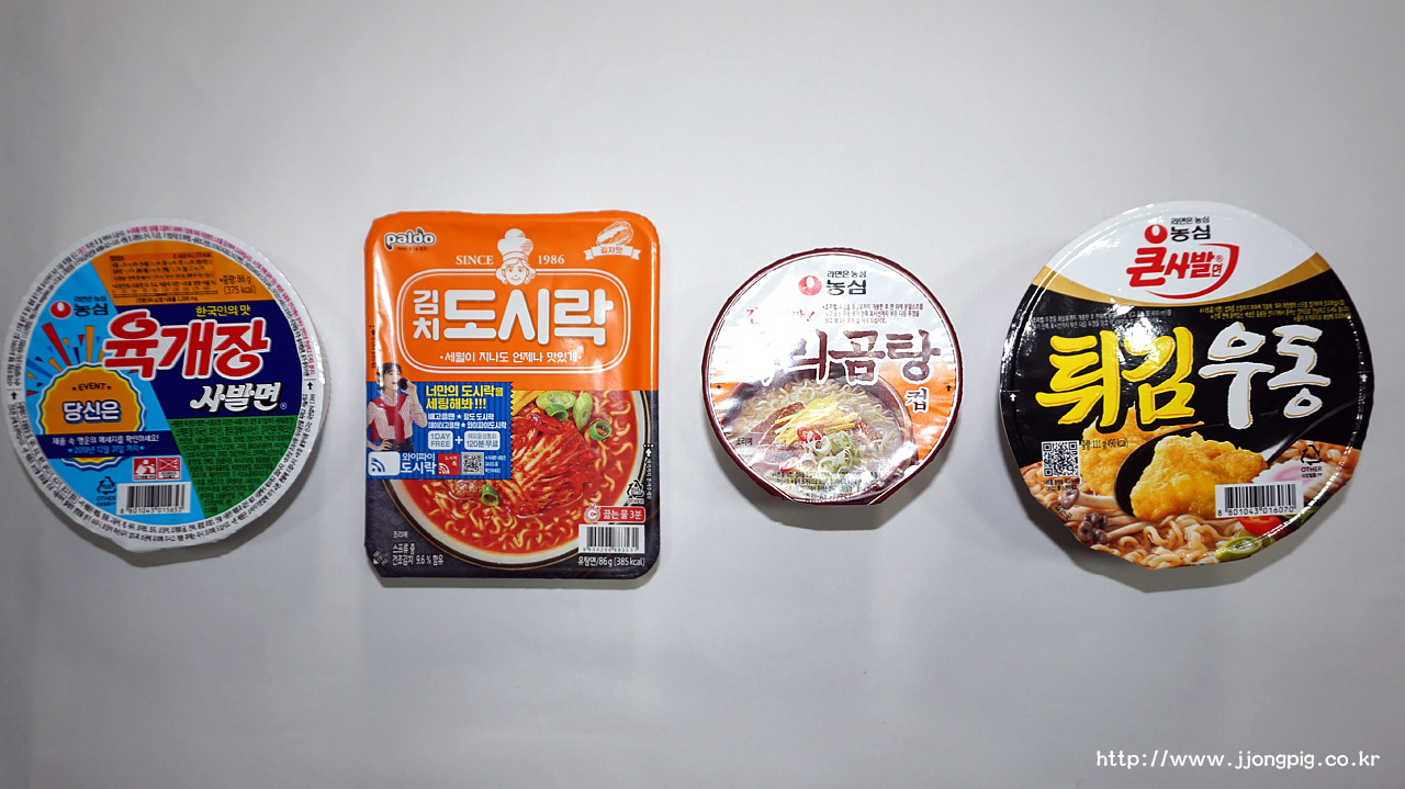 조그만 전기포트를 챙겨가는 편이다. 그리고 컵라면의 경우 용기 안에 면이 들어가 있고, 스프 1봉이 첨가된 경우가 일반적이다.