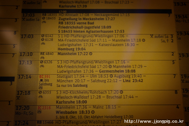 - 만하임 중앙역에서 환승시에는 계단을 따라 내려가서 플랫폼을 옮겨 계단으로 올라오는 방식이다.