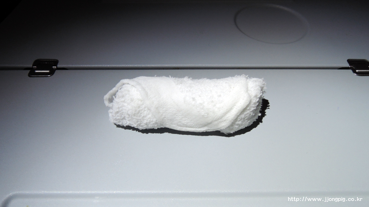 먼저 음료제공전에는 일반 물티슈가 제공되고, 두번째 기내식 제공 전에는 따뜻한 물수건이 제공된다. 향은 없다.