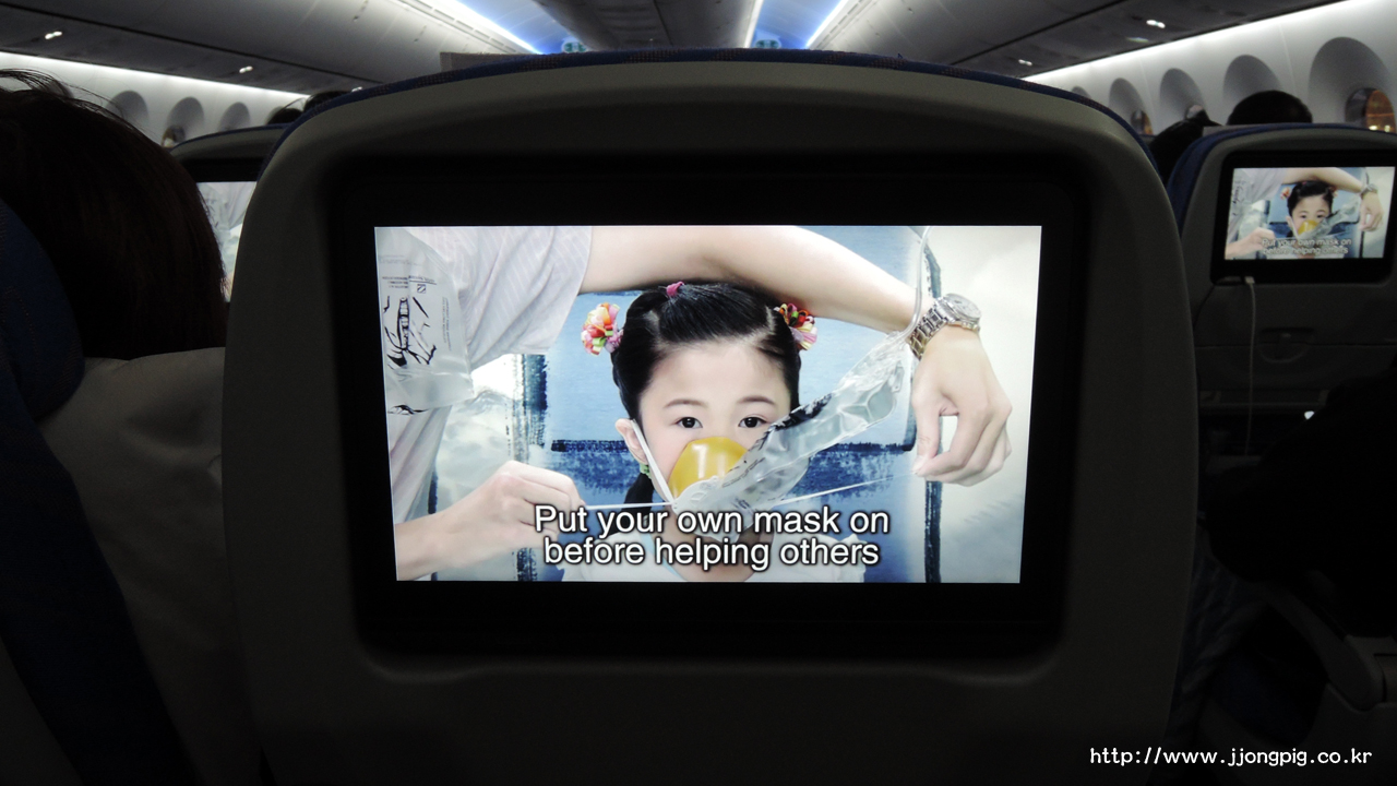 Boeing 787-900 기종에 맞는 내용이 들어가 있다. 혹시나 바다에 이쁘게 빠졌을 때 맨 뒷자리로도 탈출이 가능하다고 나온다. Boeing 737-800 기종은 불가.