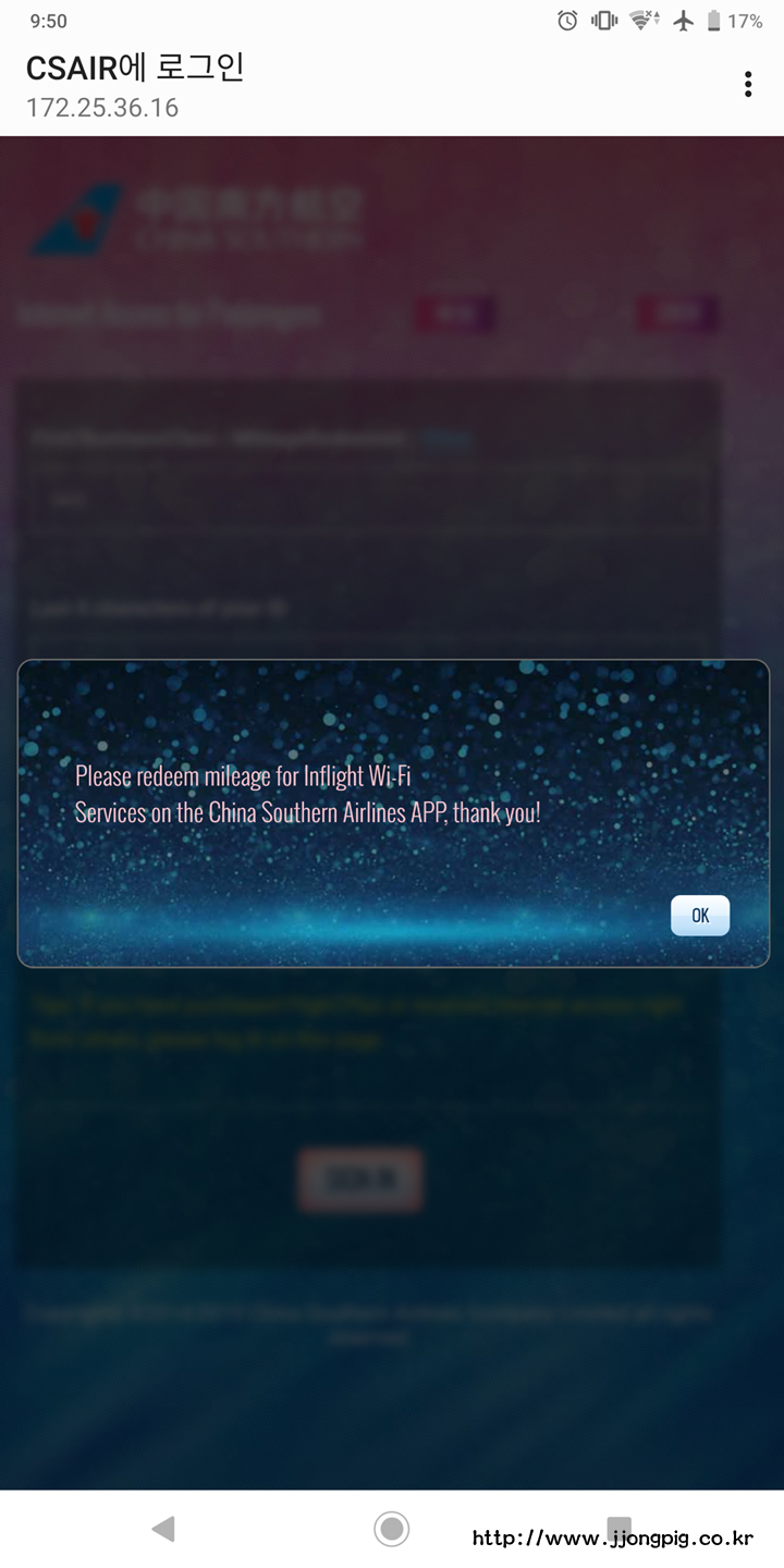 남방항공은 기내에서 무선인터넷이 잡힌다. 하지만 막상 사용해보려고 하면 잘 안되는데,