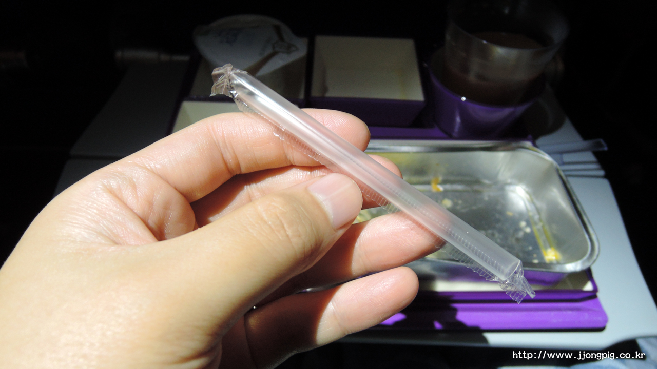 커피는 블랙커피와 밀크커피를 선택해서 제공받을 수 있는데, 밀크커피는 2:1:2 (커피:설탕:프림) 정도의 비율이라고 보면 될 것 같다. 다만 찜찜한거는 컵인데, 뜨거운 커피를 저렇게 플라스틱 컵에 그냥 줘도 되는건지... 환경호르몬 위험은 없나 싶고, 기내식 트레이에 있는 컵은 거의 활용을 안하고 있었다.