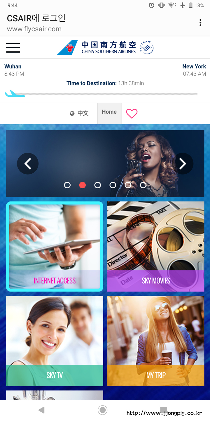 중국남방항공에서는 인천-우한도 그랬지만 우한-뉴욕 편에서도 같은 노래가 나오는데,