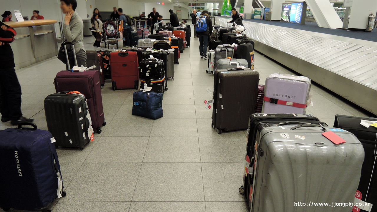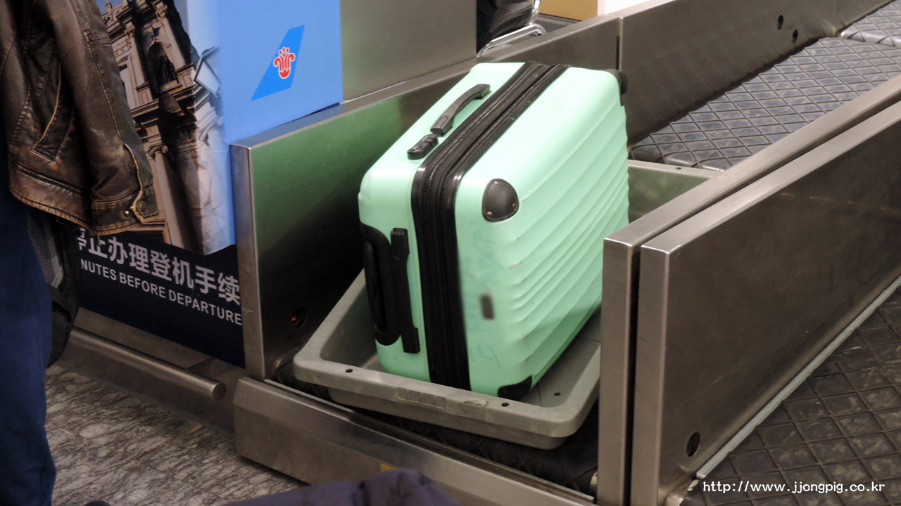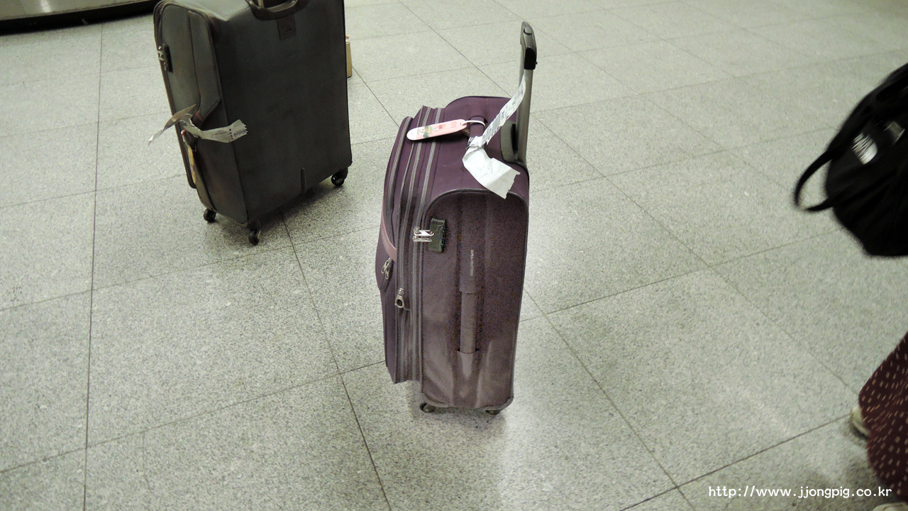 좀 늦게나왔지만 공항에서는 미리 짐을 다 벨트에서 꺼내주었다. 일본도 아니고 좀 특이하긴했는데, 해당 공항 지상조업 서비스의 하나 인것 같다. 다만 와이프의 캐리어를 보면 어디 황사를 맞았는지 먼지가 있는대로 묻은게 좀 아쉬운 부분.