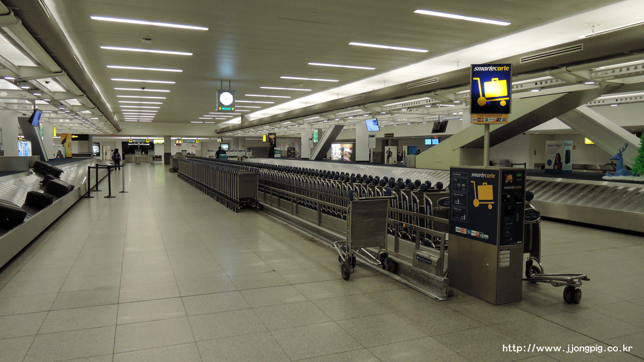 위탁수하물로 부친 짐을 찾으러 왔다. 카트는 유료다.