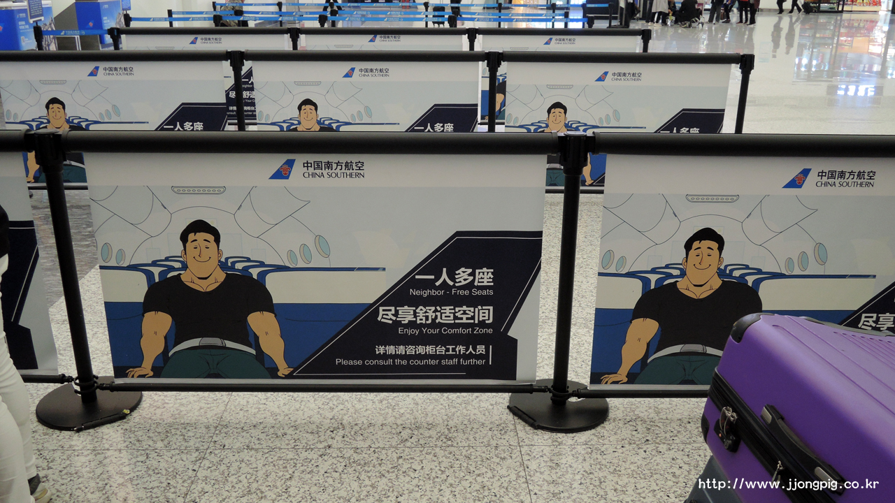 중국남방항공 좌석의 너비가 좁다는 것을 간접적으로 알 수 있다. 거꾸로 그점을 활용해서 부가서비스로 만들어내려고 하는곳이 바로 요즘의 항공사들이다.