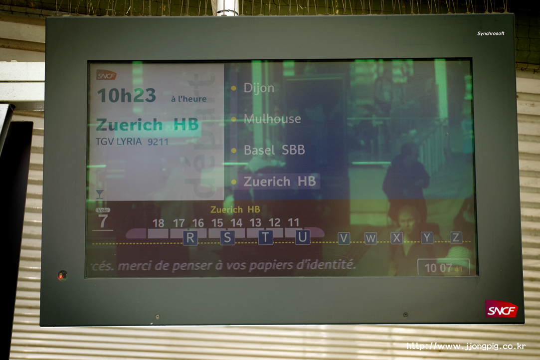 - 처음부터 취리히에서 출발하며, Basel SBB 역에서 5분 정도 정차 후 파리 리옹역에 도착하게 된다.