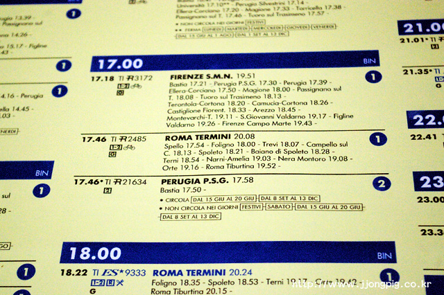 - 대부분 피렌체에서 출발해 페루자(Perugia)를 거쳐 Foligno를 종점으로 하는 완행열차들이다.