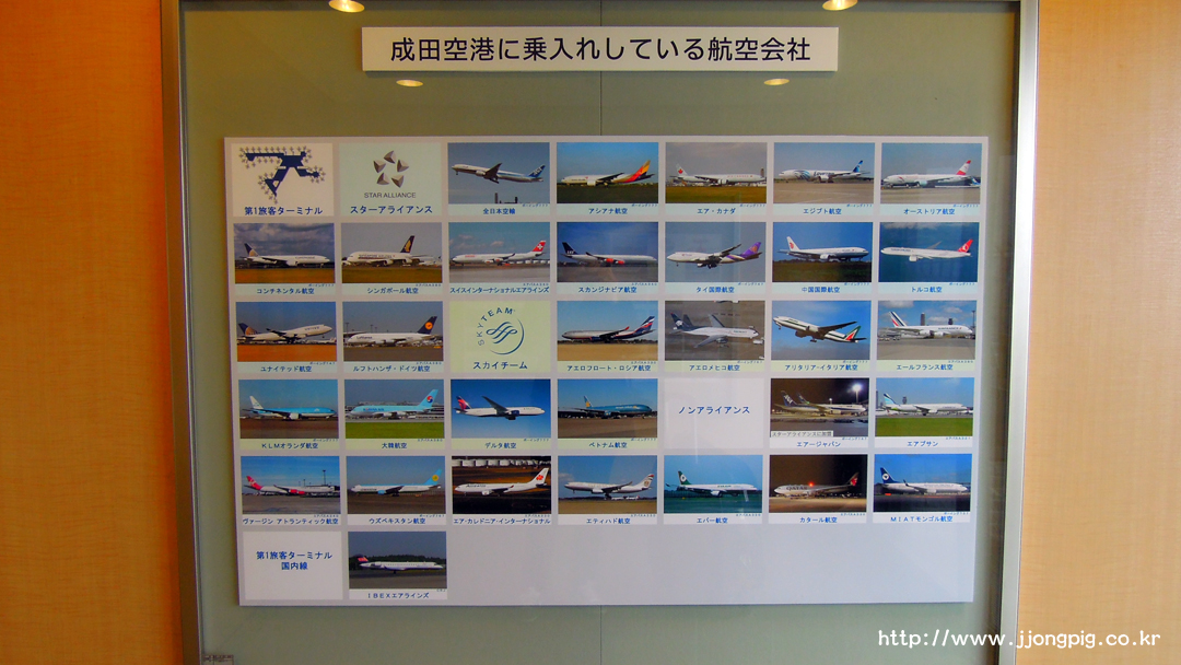나리타 공항 전망대 쪽에 가면 취항하는 항공사들을 사진으로 정리해놓고 있었다. 자세히보면 나름 그 항공사들의 최신 기종을 반영하려는 부분이 보인다.