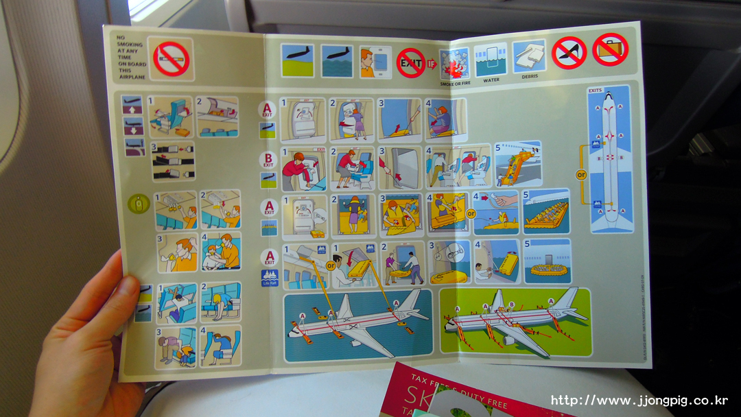 기내 멀미용 봉투와 Safety Card를 볼 수 있다.