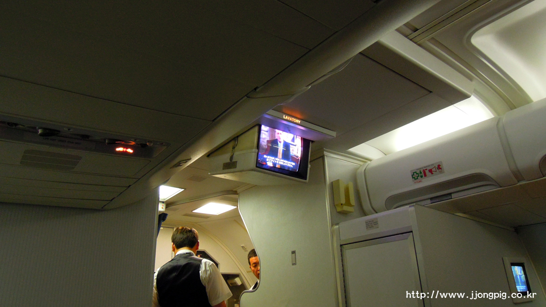 기내에서는 인천에서와 동일한 서비스가 제공이된다. 상단의 화면을 보려면 시력이 좋아야 한다. -.-