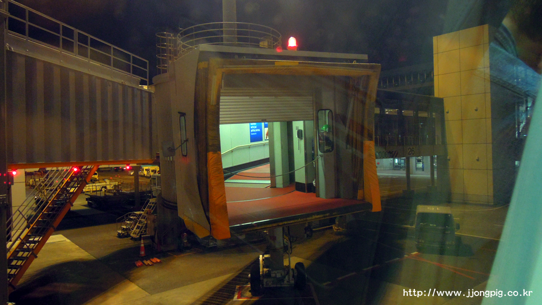 비행기의 앞좌석에 앉으면 탑승교와 분리되는 과정을 볼 수 있다.