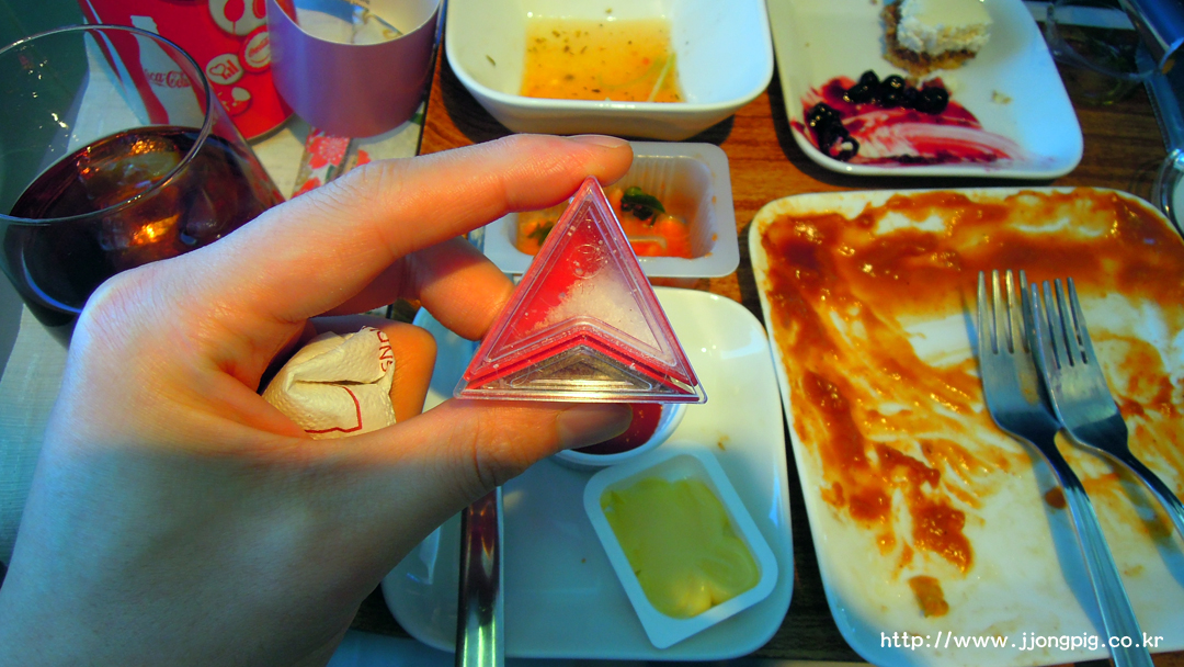 소금이나 후추가 담겨진 통은 델타항공 CI를 상징하고는 있는데, 효율면에서는 좀 그랬다.