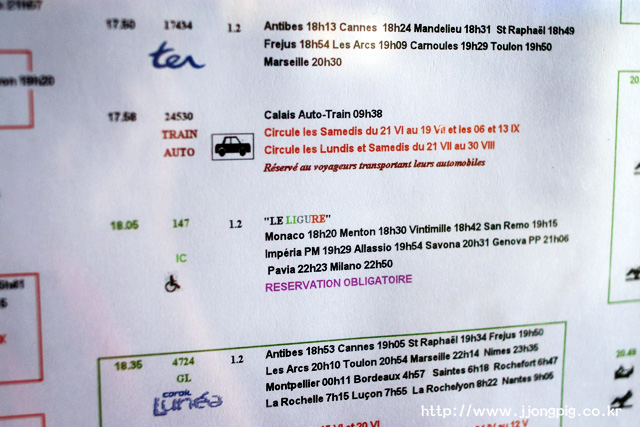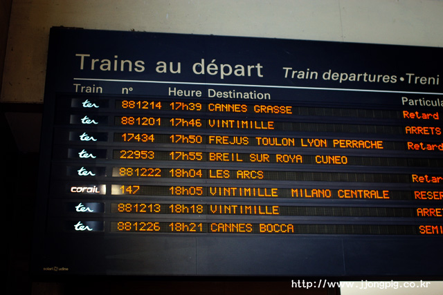 - 대부분 칸느나 Grasse에서 출발해 Ventimiglia를 종점으로 하는 열차들이다.