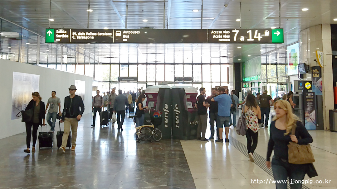 - 바르셀로나 산츠역 플랫폼은 지하에 있다.