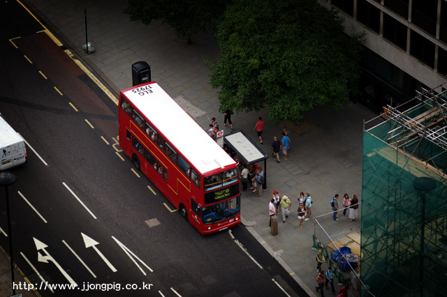 2층 맨 앞자리에 앉아서 풍경을 바라보는 우월감? 시티투어 버스가 따로없다. 조금 황당한것은 수도권 같으면 시스템을 갖추어서 배차 간격을 맞춰서 운영하는편인데, 런던은 그런것 없다. 뒤의 버스가 앞의 버스를 역전하는 경우를 심심치 않게 본다. --;;