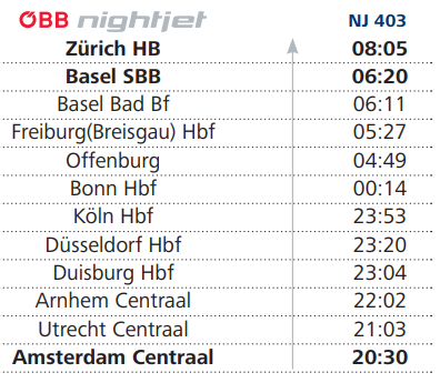 - 암스텔담에서 스위스 바젤까지 가는 ICE로 이동 후 바젤에서 취리히로 가는 열차를 이용하면 된다.