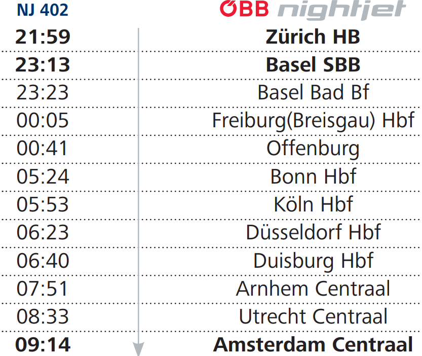 - 취리히를 출발해 바젤을 거쳐 스트라스부르그, 에인트호벤 등을 거쳐 암스테르담으로 간다.
