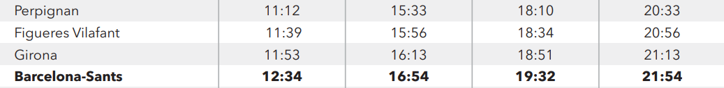 - 스페인은 열차 선로의 궤도폭이 다르다고 하지만, 이 구간의 고속열차는 일반 궤도를 이용하기 때문에 국경이동을 빠르게 할 수가 있다.