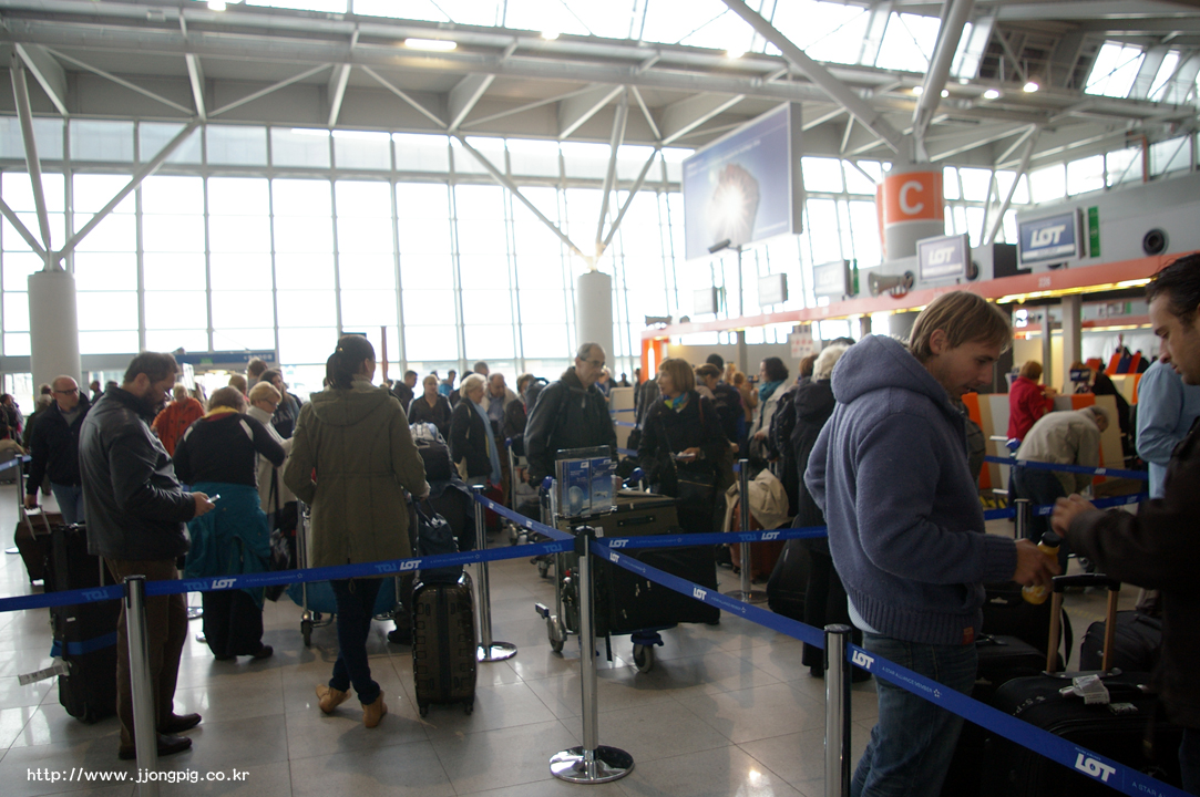 쇼팽 공항은 다음 비행편으로의 환승 대기시간이 공식적으로는 40분인데, 1시간 정도에 별 일이 없으면 무난하게 가능한 구조다. 그 후에 갔을 때에도 여러번 느낀 시간의 기준이다. 다만 공항이 좀 작은 느낌이 있고, 해가 지날 수록 이용객이 많아진다는 느낌을 받는데, 쇼팽 공항 말고도 바르샤바 북서쪽에는 Modlin(모들린?모드린?)공항이 있다. 이곳이 저비용 항공사들이 많이 이용하면서 증가폭이 두드러지는 곳으로 이슈가 되고 있다.