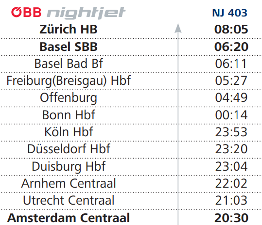 • 암스테르담을 출발해 쾰른, 바젤 등을 거쳐 취리히 까지 가는 야간열차를 이용해볼 수 있다.