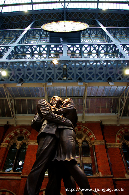 동상을 바라보고 오른편 뒷쪽에는 John Betjemann 동상이 있는데, 이 분은 원래 영국의 시인이고 판크라스역을 지키기 위한 캠페인을 진행하면서 철거를 막아냈다고 한다. 만약 철거가 되었다면... 지금의 유로스타는 다른 기차역에서 출도착이 이뤄지지 않았을까 싶다.